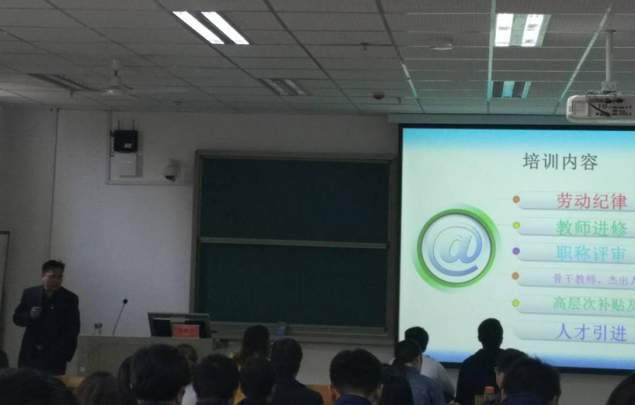刘其涛副处长重点向老师们解读了我校人事管理工作方面的相关规章,从劳动纪律、教师进修学习、职称评审、高层次补贴考核、以及学校优秀人才成长梯队建设等方面,结合身边鲜活丰富的实例,向老师们提出了工作中的注意事项和职业发展建议。