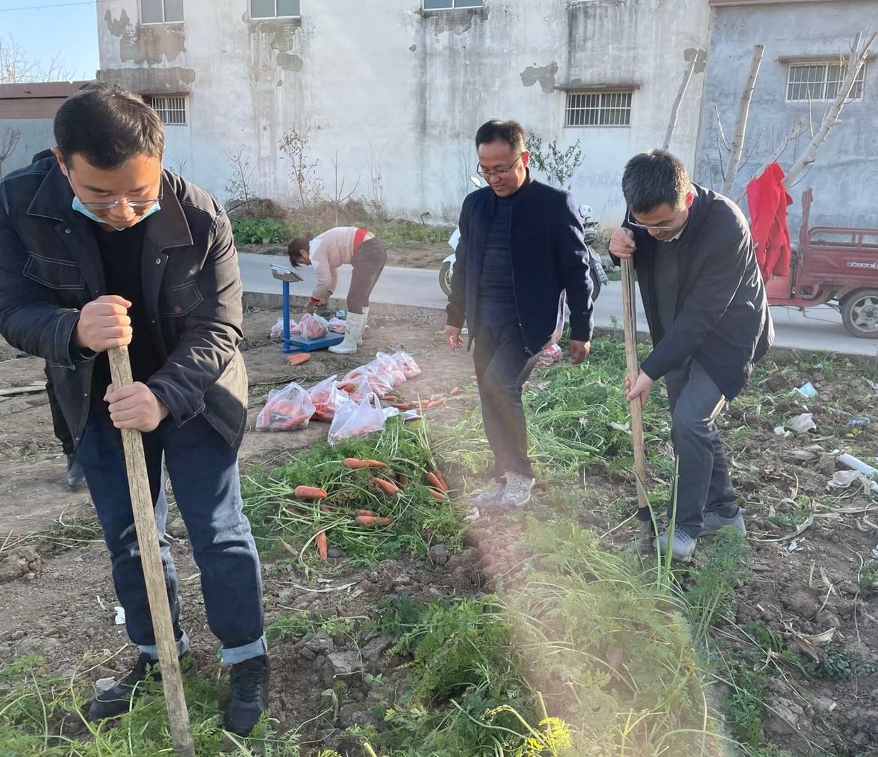 在部(处)长王俊的带领下,部门十余位教职工来到袁庄村,走进蔬菜种植基地。老师们饶有兴趣地与种植户深入交谈,了解香菇、黄瓜的种植、管理和销售情况。田间地头,老师们纷纷帮助菜农采挖、分拣胡萝卜和一些蔬菜,一张张脸上洋溢着收获的喜悦。大家在参与劳动的同时还踊跃购买香菇、红薯、胡萝卜、黄瓜等农产品。