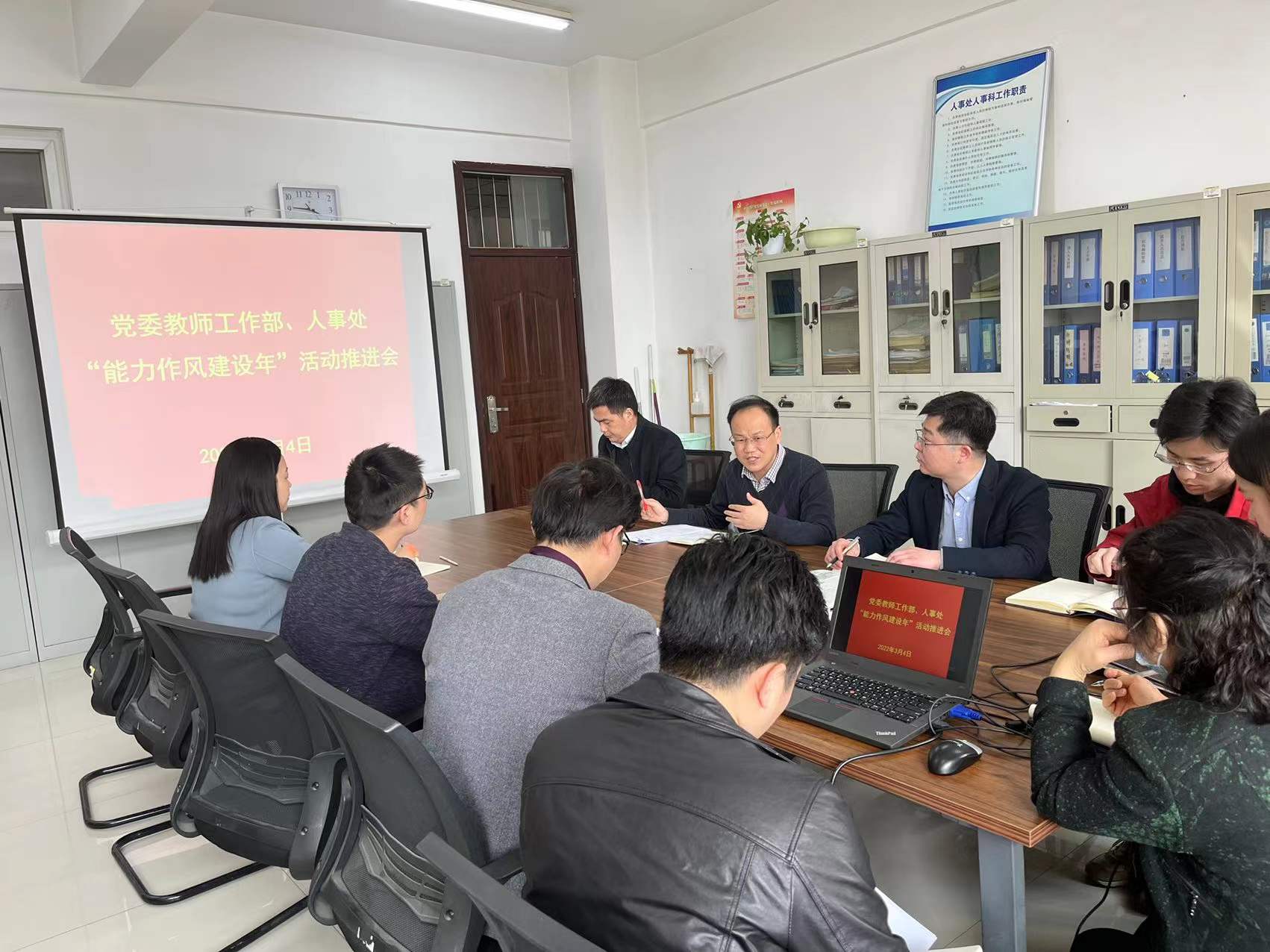 2022年3月4日下午,党委教师工作部、人事处在行政楼430会议室召开“能力作风建设年”活动推进会,会议由王俊(部)处长主持,部门全体人员参加。
